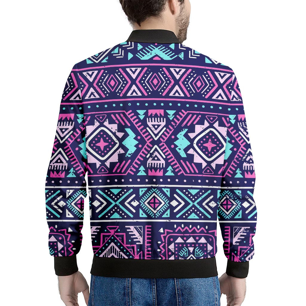 Blue And Pink Aztec Pattern Print Men’s Bomber Jacket