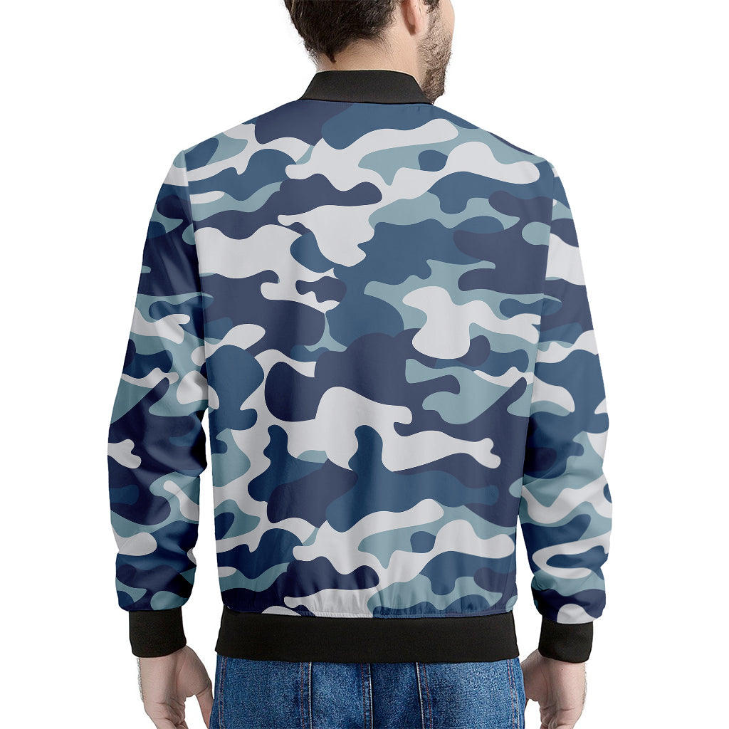 Blue And White Camouflage Print Men’s Bomber Jacket