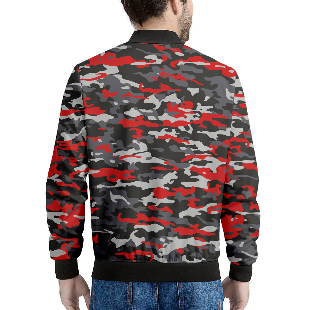 Orange Black And Grey Camouflage Print Men’s Bomber Jacket